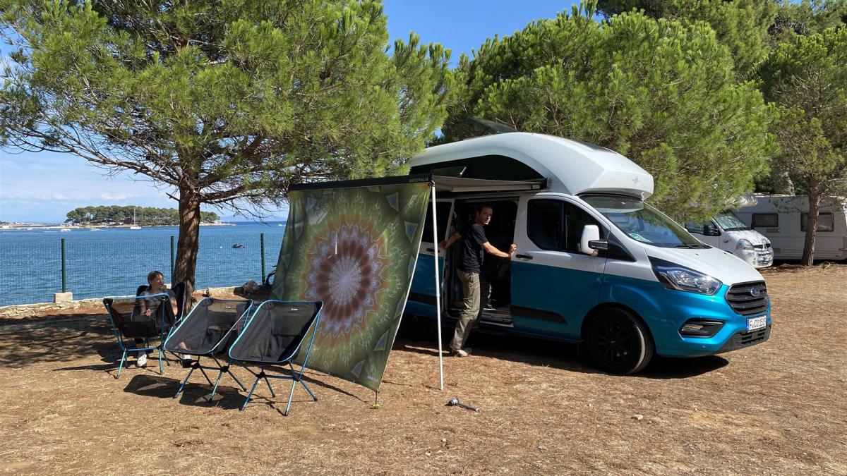 Vor gut einem Jahr – im August 2022 – waren wir mit unserem Ford Nugget auf Kroatiens größter Halbinsel Istrien unterwegs. In dem kleinen, feinen Kranjski Kamp Premantura fanden wir eine echte Homebase. Wir hatten Meerblick gebucht, und so standen wir in erster Reihe gleich oberhalb des platzeigenen Strandes. Herrlich! Während es im Landesinneren brütend heiß war, wehte uns an der Küste stets ein kühlender Wind ins Gesicht. Wir kamen nur selten ins Schwitzen.