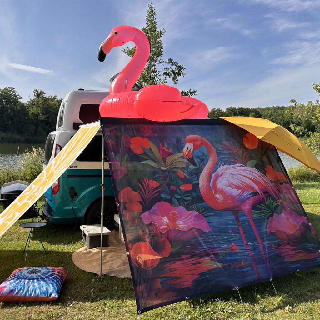 Bist du bereit, mit deinem Camper eine Extraportion gute Laune zu verspühen? Das aufsehenerregende VANDALA Markisensegel® Pretty in Pink ist nicht nur ein garantierter Blickfang, sondern auch ein 100%iges Gesprächsthema. Der schrille Flamingo verwandelt jeden Outdoor-Bereich in ein leuchtendes Paradies! Und hey, wir wissen alle: Pink ist nicht nur eine Farbe – Pink ist eine Lebenseinstellung! Mach deinen Campingspace zum coolsten Spot auf dem Platz.