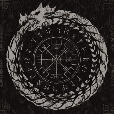 Im Zentrum steht der Vegvísir, der isländische »Wegweiser«. Dieses Schutzsymbol soll seinem Träger helfen, niemals den Weg zu verlieren – selbst unter stürmischen Himmeln. Umrahmt wird es vom Jörmungandr, der mythischen Midgardschlange, die sich selbst in den Schwanz beißt – ein Sinnbild für den ewigen Kreislauf des Lebens. Fein gearbeitete Runenreihen und symbolische Muster an den Rändern verleihen dem Segel eine tiefgründige, mystische Aura.