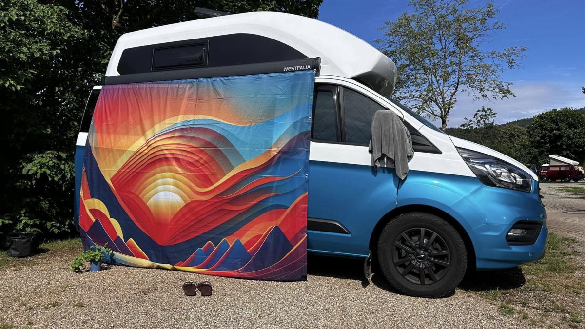 Vor ziemlich genau einem Jahr hatten wir unser erstes VANDALA am Start: ein farbenfrohes Markisensegel, zugeschnitten auf unsere Bedürfnisse. Sichtschutz. Sonnenschutz. Windschutz. Leicht und robust, funktional und stylisch, schnell auf- und wieder abzubauen. Der Name VANDALA war über Nacht vom Himmel gefallen. Wie sollten wir das praktische Tuch – ein Mandala für unseren Van – auch sonst nennen?